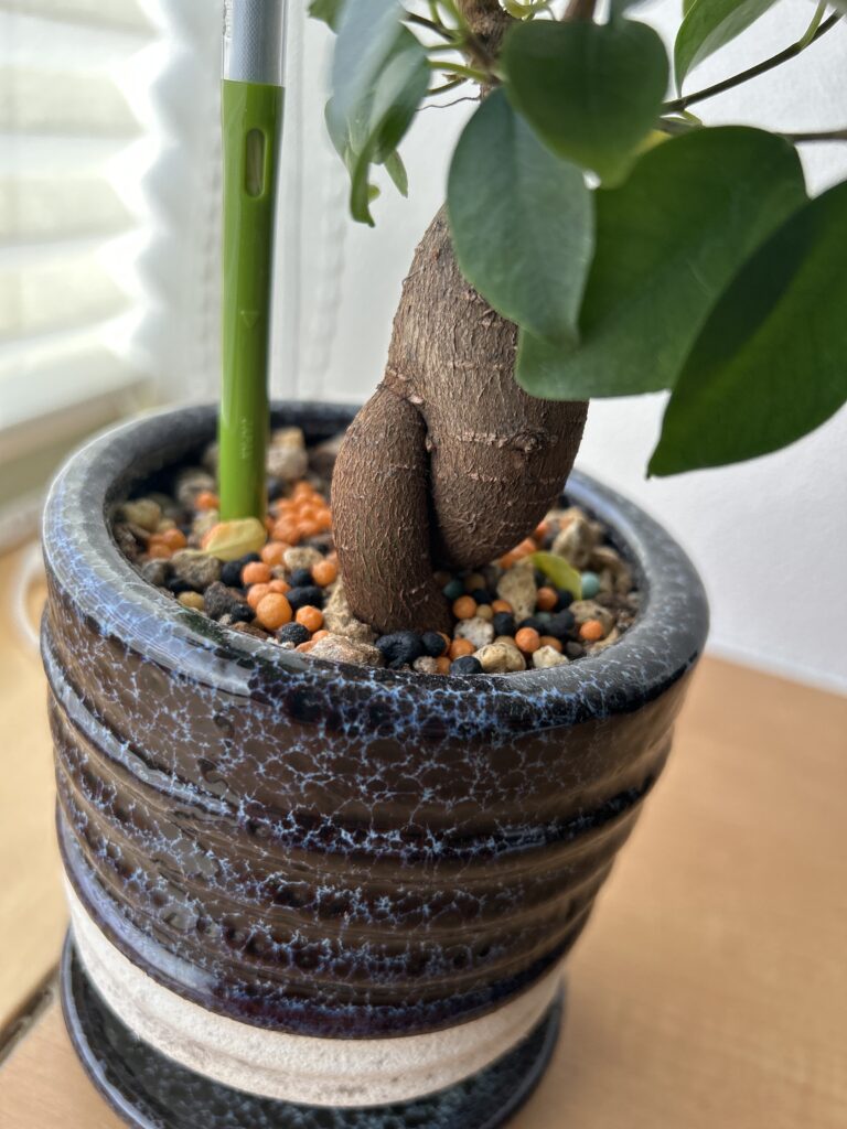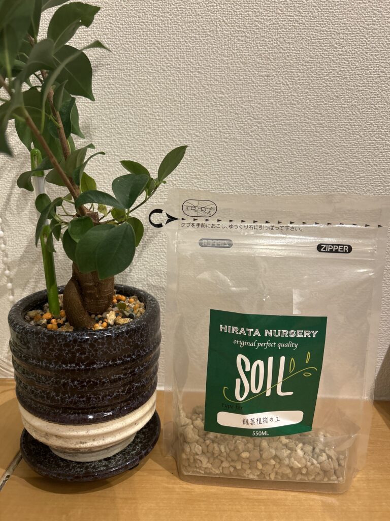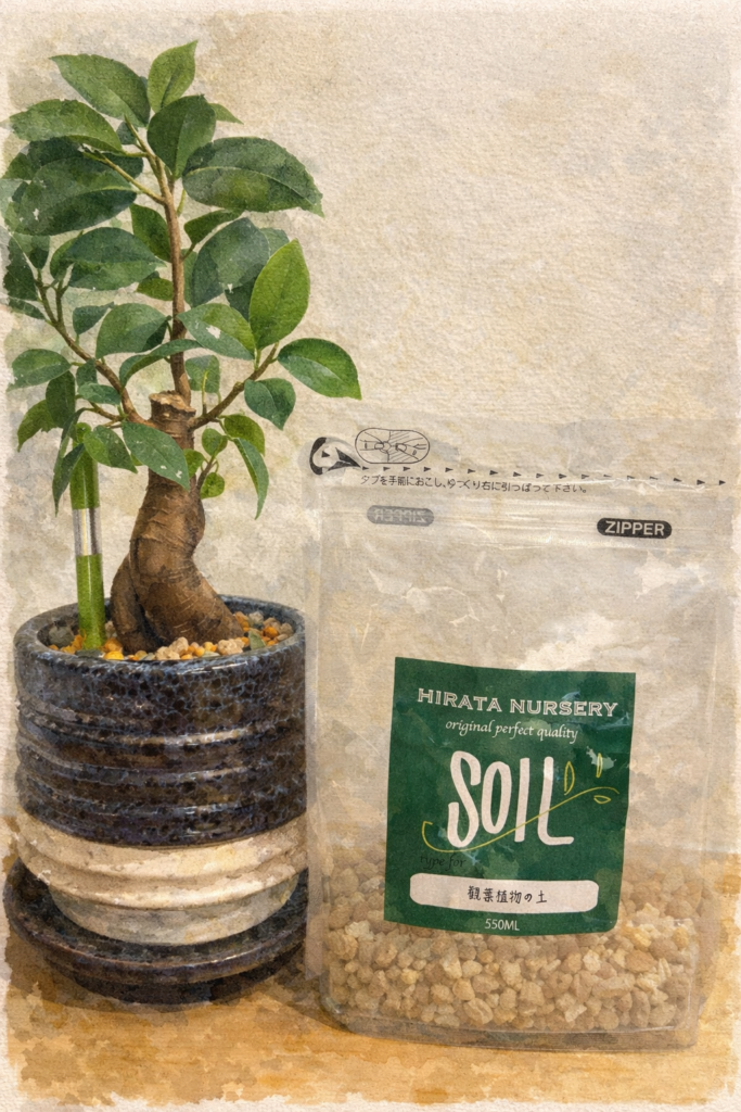 私自身、ガジュマルの若木を迎えたときは知識がなく、お店の方に植え替えをお願いしました。鉢は自分で選びましたが、土については正直よく分かっていませんでした。