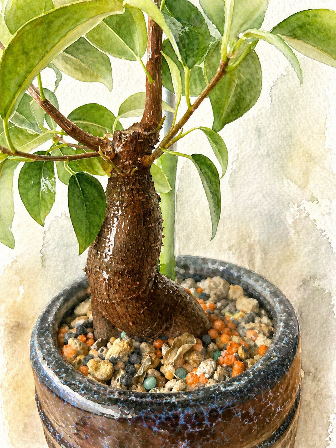 ガジュマルの幹が湿っている原因は、水の与えすぎや通気性の問題が多いです。